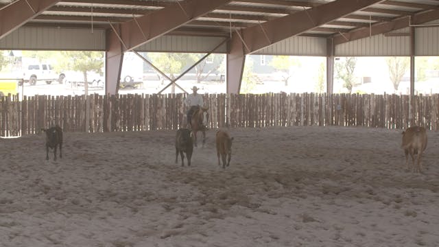 Jade works a seasoned show horse on cattle and explains what he's looking for when he's riding a horse on cattle at home, and goes over how he prepares his horse for his next show.