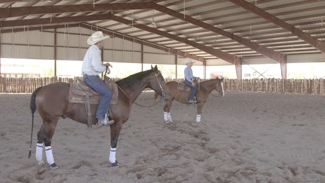 Jade Keller talks about why he uses a mule tape tie-down on this particular cutting horse, and how it helps him work a flag or a cow easier.