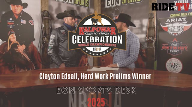 Clayton Edsall and Bet Hesa Boon started off the NRCHA World's Greatest Horseman with a high score of 223 in the herd work. Edsall sits down with Ferron Lucero at the EQN Sports Desk to speak on his journey to this year's event and Bet Hesa Boon.