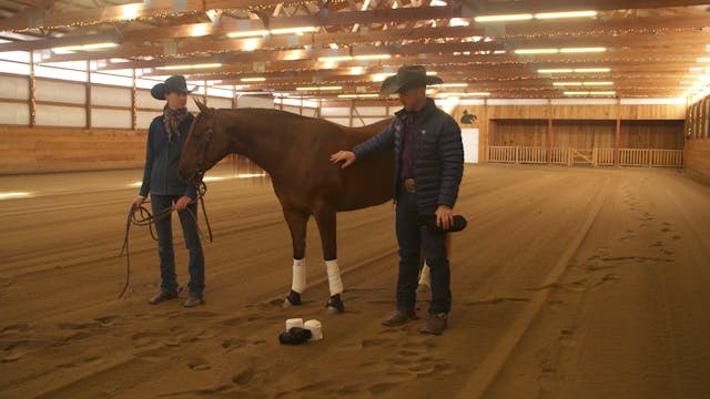 Ryan Rushing shows you how he likes to wrap his horse's back legs to protect his horse's legs during reining competition.